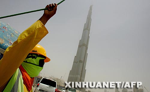 迪拜塔項目的開發(fā)商當天稱,迪拜塔的完工時間將由原定的2008年年底推遲至2009年9月。2004年9月動工的迪拜塔在2008年4月高度達到629米,成為世界最高建筑。為防止競爭者超越,迪拜塔的最終高度一直沒有公布。 新華社/法新