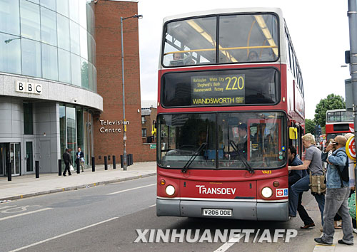 6月11日,在英國倫敦,幾名乘客在英國廣播公司(BBC)總部前乘車。