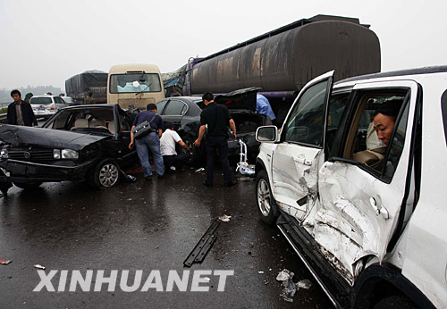 當天13時許,山西省大運高速明姜路段960公里加4公里處連續(xù)發(fā)生五起車輛追尾事故,目前已有1人死亡9人受傷。 新華社發(fā)