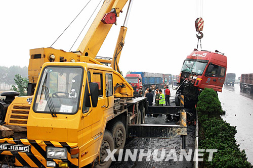 6月15日,相關(guān)部門在清理車禍現(xiàn)場。 當天13時許,山西省大運高速明姜路段960公里加4公里處連續(xù)發(fā)生五起車輛追尾事故,目前已有1人死亡9人受傷。 新華社發(fā)