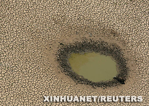 2005年10月26日,因巴西亞馬孫河流域遭遇嚴(yán)重干旱,一頭牛正在接近干涸的庫魯阿伊湖湖底喝水。 新華社/路透 |