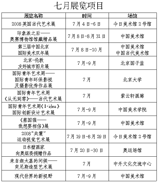 "相約北京-2008文化活動"七月展覽項目[圖]