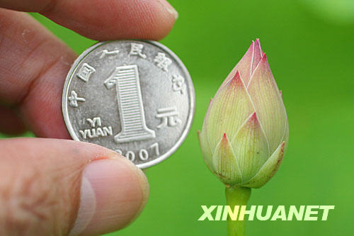 碗蓮的花苞比一元錢(qián)硬幣還。6月16日攝)。