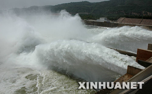 6月23日,黃河小浪底水庫大流量下泄,飛瀑景觀再現(xiàn)小浪底。