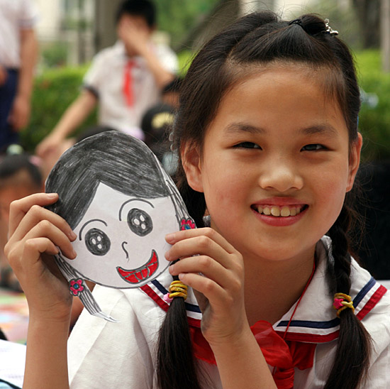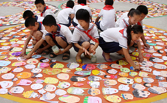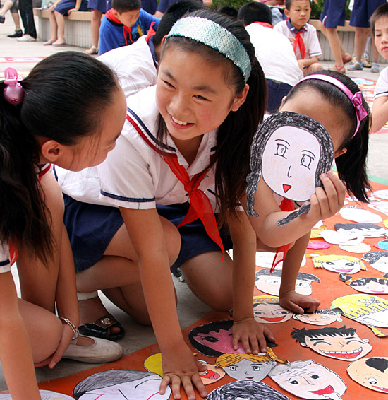 安徽省淮北市黎苑小學(xué)日前開展了最美“笑臉”迎奧運活動,學(xué)生們把自己畫的“笑臉”貼在奧運五環(huán)里,由老師和學(xué)生組成的評委對作品進行投票評獎。