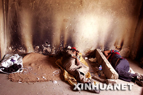 6月23日,在阿富汗首都喀布爾,吸毒者在廢棄的建筑物里休息。 |
