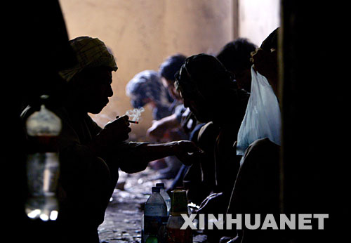 6月23日,在阿富汗首都喀布爾,吸毒者在廢棄的建筑物里吸食海洛因。 |