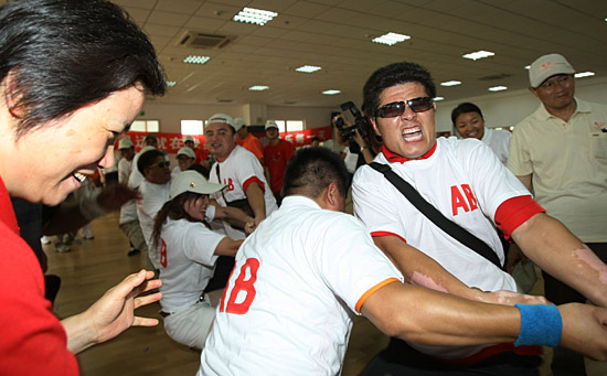 7月6日,上海“迎奧運 展風(fēng)采”首屆無償獻血志愿者趣味運動會在上海體育學(xué)院舉行。新華社發(fā)
