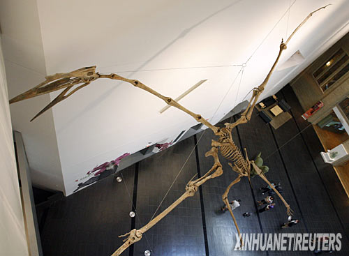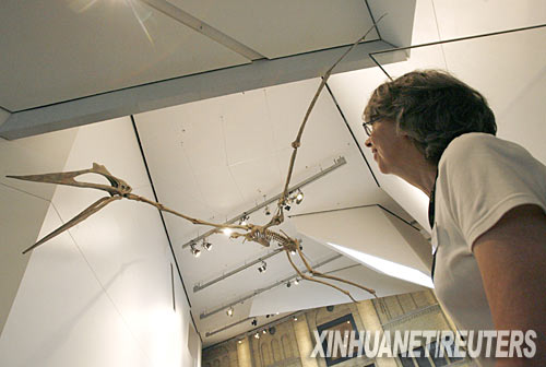 7月17日,世界上最大的風(fēng)神翼龍化石骨架在加拿大多倫多市的安大略皇家博物館內(nèi)展出。這具骨架體長(zhǎng)6米,翼展達(dá)12米。風(fēng)神翼龍是地球生命史上最大的飛行動(dòng)物之一。 新華社/路透