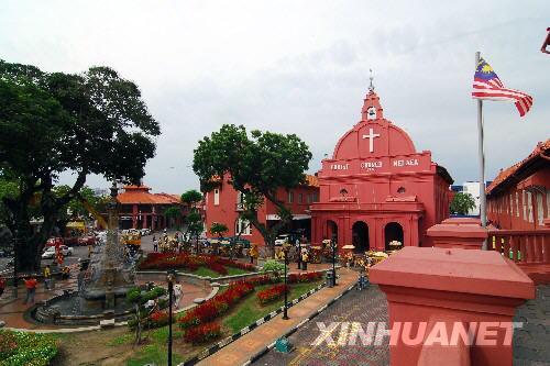 馬來西亞馬六甲海峽歷史城市馬六甲和檳城于2008年7月7日被聯(lián)合國教科文組織列為世界文化遺產(chǎn)。當(dāng)?shù)卣壳耙阎贫ㄐ袆佑?jì)劃加強(qiáng)對世界文化遺產(chǎn)的保護(hù),并將于8月舉行申遺成功慶;顒。圖為馬六甲市內(nèi)一座由荷蘭人于1753年建造的教堂,該教堂是馬六甲市標(biāo)志性建筑之一(2008年7月18日攝)。 |