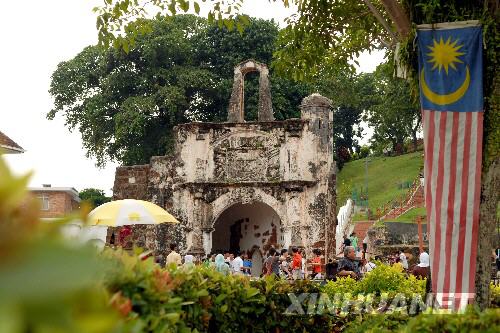 圖為馬六甲的圣地亞哥古城門,該城門是1511年由葡萄牙人建造的圣地亞哥古城堡的大門(2008年7月18日攝)。 |