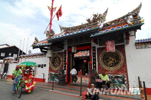 圖為馬六甲市內(nèi)的青云亭,始建于1646年,是當(dāng)?shù)貧v史最悠久的華人廟宇(2008年7月18日攝)。 |