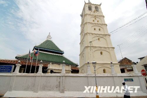 圖為馬六甲市內(nèi)的甘榜吉寧清真寺,該清真寺由印度人于18世紀(jì)早期修建,是馬來西亞最古老的清真寺之一(2008年7月18日攝)。 |