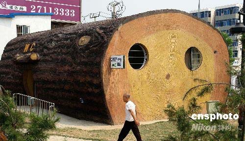 7月21日,天津新建成的長(zhǎng)虹生態(tài)園內(nèi),造型酷似大樹(shù)的藝術(shù)公廁。據(jù)介紹,該“木頭”公所直徑5米、長(zhǎng)10米,占地面積近100平方米,內(nèi)部為磚混結(jié)構(gòu),由人工雕繪制成。