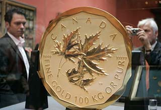 日前,由加拿大皇家鑄幣局鑄造的100公斤金幣運(yùn)抵京城。據(jù)悉,這是該枚金幣首次在中國(guó)亮相,它將于8月8日北京2008年奧林匹克博覽會(huì)現(xiàn)場(chǎng)與廣大市民見(jiàn)面。 據(jù)悉,這枚金幣是由加拿大皇家鑄幣局于2007年5月3日推出的全球首枚100公斤純金金幣,被加拿大媒體譽(yù)為“很厚的黃金比薩”,其面值約合100萬(wàn)加元(約合700萬(wàn)元人民幣)。加拿大皇家鑄幣局采用了世界最先進(jìn)的鑄幣技術(shù),使得該枚金幣的純度高達(dá)99.999%,且重量驚人,是目前世界上純度最高的金幣。 此枚金幣直徑53厘米,厚3厘米。如今,它已經(jīng)以“世界上最大的金幣”頭銜而被載入吉尼斯世界記錄。