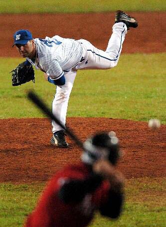 2004年7月11日,天津雄獅隊球員張萬軍在投球。當日,2004年全國棒球聯(lián)賽總決賽在天津落下帷幕,經(jīng)過五場激戰(zhàn),衛(wèi)冕冠軍北京猛虎隊以3比2力克天津雄獅隊蟬聯(lián)冠軍。