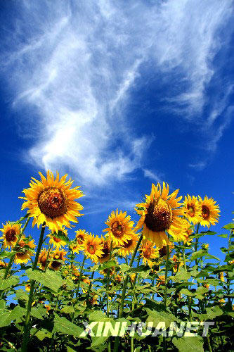 7月22日在新疆阿勒泰拍攝的盛開的向日葵。7月中旬以來,阿勒泰市周邊的10萬畝向日葵競相綻放,景色迷人,吸引了大量游客前來觀賞,也吸引了許多養(yǎng)蜂人前來放蜂、采蜜。