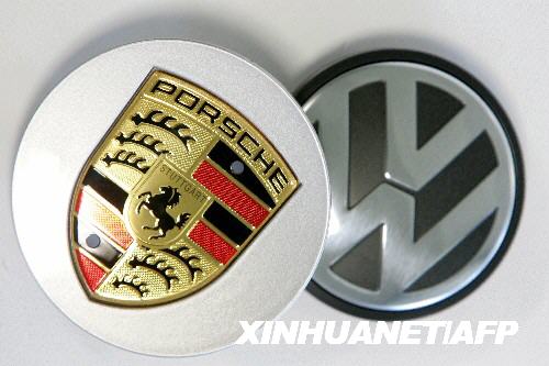 這是2005年9月26日在德國威廉港拍攝的保時捷(左)與大眾的標(biāo)志。 新華社/法新