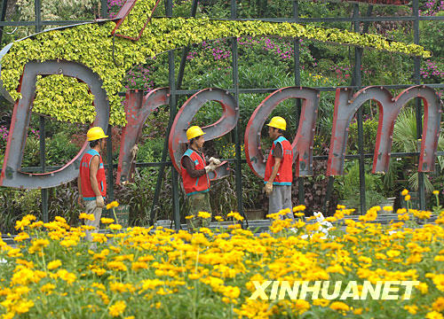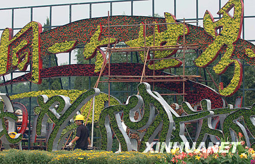 奧運(yùn)臨近,天安門廣場上的花壇工程正在緊張進(jìn)行中,許多奧運(yùn)景觀造型已初具規(guī)模,吸引了眾多中外游客前來參觀,扮靚了夏日里的天安門廣場。