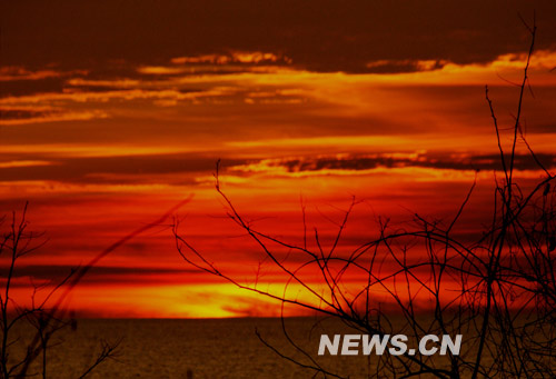喀麥隆克里比大西洋落日后的火燒云。