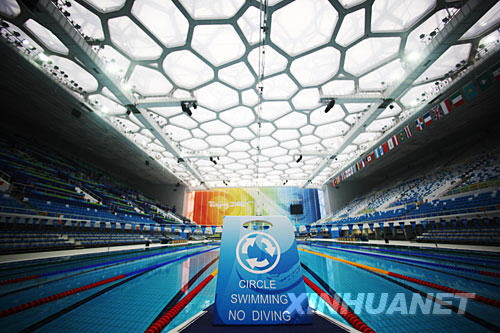這是7月27日拍攝的國家游泳中心(“水立方”)內(nèi)景。當(dāng)日,國家游泳中心正式向各國運動員開放。