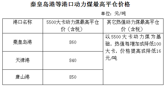 附件:秦皇島港等港口動(dòng)力煤最高平倉價(jià)格