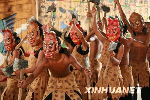 7月27日在安徽休寧鹽鋪村拍攝的山越民俗風情表演。