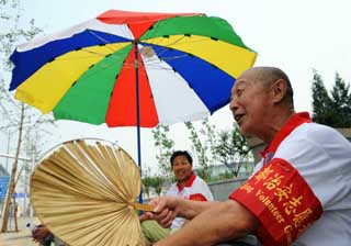 7月26日,住在科學(xué)園小區(qū)的老人坐在居民樓前的街邊,為過往行人指路,并配合執(zhí)勤警察維持秩序,認(rèn)真履行“首都治安志愿者”的職責(zé)。
