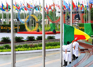 7月29日,貝寧奧運(yùn)代表團(tuán)在北京奧運(yùn)村舉行升旗儀式。