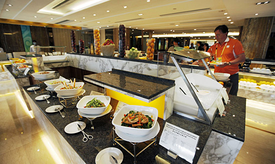 作為奧運馬術比賽協(xié)辦城市的香港,奧運氣氛日益升溫,隨處可感受到迎面而來的“奧運風”。 為成功舉行奧運馬術比賽,香港花費12億港元興建和完善了奧運馬術比賽場地,場地的硬件設備和軟件條件現(xiàn)已準備就緒。 由于舉辦奧運賽事,來自世界各地的運動員、媒體記者和游客正陸續(xù)抵港。向來緊隨潮流的香港餐飲業(yè)自然應時應景,瞄準奧運商機,推出相關特色菜式及點心。 據(jù)介紹,這些奧運菜式的命名都已嚴格按要求向有關部門進行申報并獲得通過。香港連鎖飲食集團執(zhí)行經(jīng)理鐘家寶介紹,奧運主題點心及套餐已漸漸升溫,自推出以來已占生意額約一成。期待奧運會期間,奧運菜肴還會有更好的表現(xiàn)。