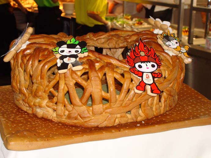 8月8日,北京奧運(yùn)會(huì)媒體村匯園公寓餐廳推出早餐——“鳥巢”面包,以迎接北京奧運(yùn)會(huì)開幕式。