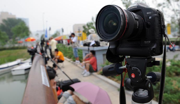 8月8日,眾多攝影記者提前在國家體育場——“鳥巢”南側(cè)架好攝影器材,為晚上的開幕式做準(zhǔn)備。此刻距北京奧運(yùn)會開幕還有不到6個(gè)小時(shí)。