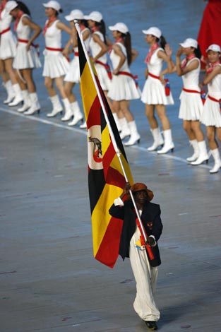 >> 烏干達(dá)代表團(tuán)在開幕式上入場