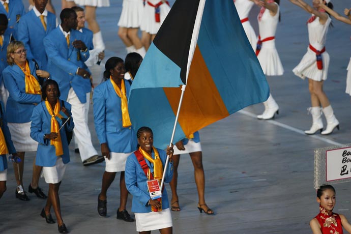 >> 巴哈馬代表團(tuán)在開(kāi)幕式上入場(chǎng)