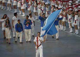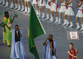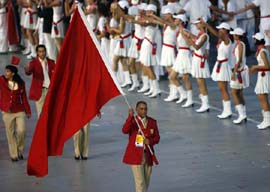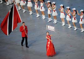 8月8日晚8時,第29屆夏季奧林匹克運動會在國家體育場——“鳥巢”隆重開幕。這是各國代表團在開幕式上入場。