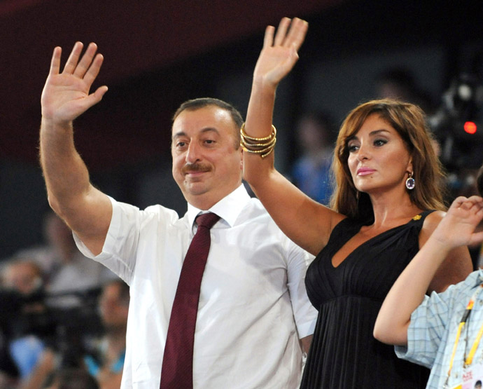 >> 阿塞拜疆總統(tǒng)阿利耶夫和夫人在開幕式上