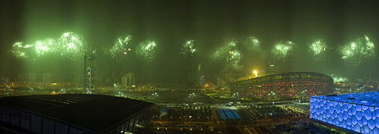 奧運(yùn)會(huì)開幕式上的焰火表演。新華社記者 徐家軍 陳凱 攝 |