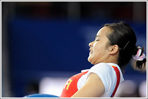 中國(guó)選手陳?ài)葡荚诒本⿰W運(yùn)會(huì)女子48公斤級(jí)舉重比賽中獲得冠軍。