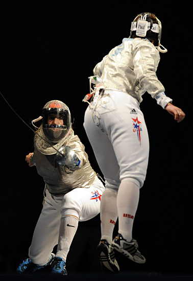 8月9日,美國選手瑪麗埃爾·扎格尼斯(左)在比賽中。當(dāng)日,在國家會議中心擊劍館舉行的北京奧運(yùn)會女子佩劍個人賽中,美國選手瑪麗埃爾·扎格尼斯戰(zhàn)勝另一名美國選手薩達(dá)·雅各布森,獲得冠軍。