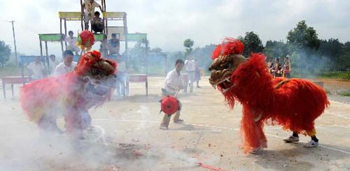當(dāng)日,貴州省錦屏縣新化鄉(xiāng)新化所村舉行有600余年歷史的高臺(tái)舞獅民俗活動(dòng),歡慶第29屆奧運(yùn)會(huì)在北京舉行。據(jù)悉,新化舞獅形象逼真、色彩鮮艷、動(dòng)作矯健,善于表演搶花炮、旋角、打滾等高難度動(dòng)作。