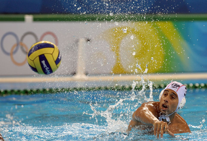 8月10日,西班牙隊球員戴維·馬丁在比賽中射門。當日,北京奧運會水球比賽在奧體中心英東游泳館拉開帷幕,首場比賽西班牙隊以16比6戰(zhàn)勝加拿大隊。