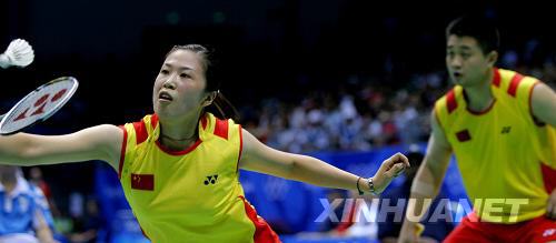 8月12日,中國(guó)選手高崚(左)/鄭波在比賽中。在當(dāng)日進(jìn)行的北京奧運(yùn)會(huì)羽毛球混合雙打前16名比賽中,中國(guó)選手高崚/鄭波以1比2不敵英國(guó)選手蓋爾·埃姆斯/內(nèi)森·羅伯遜,被淘汰出局。新華社記者