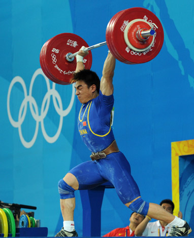 8月12日,中國(guó)運(yùn)動(dòng)員廖輝在比賽中。當(dāng)日,廖輝在北京奧運(yùn)會(huì)舉重男子69公斤級(jí)決賽中以348公斤的總成績(jī)獲得金牌。