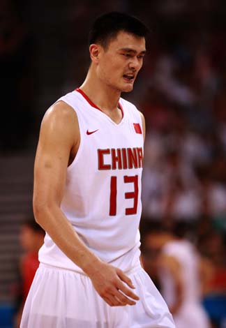 8月12日,中國(guó)隊(duì)姚明在比賽中。