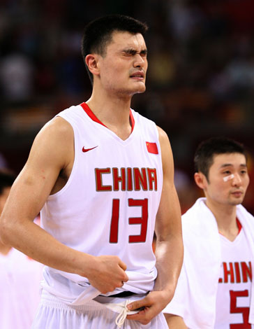 8月12日,中國(guó)隊(duì)姚明在比賽中。