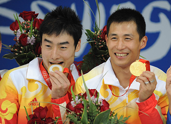 幾乎所有人都知道,只要不出現(xiàn)失誤,北京奧運(yùn)會(huì)跳水項(xiàng)目男子雙人3米跳板比賽的金牌必然屬于如日中天的秦凱和王峰。 13日的“水立方”,金燦燦的“金鑲玉”果然掛在了兩位中國(guó)小伙子的胸前。掌聲雷動(dòng),國(guó)歌奏響,22歲的秦凱和29歲的王峰傾情相擁,眼眶濕潤(rùn)。 當(dāng)然,所有人也都明白,秦凱和王峰并非寂寞高手,他倆的奪金路上,橫亙著兩座大山:34歲的俄羅斯“跳水沙皇”薩烏丁和比他小16歲的搭檔庫(kù)納科夫,以及23歲的加拿大“神童”德斯帕蒂和37歲的搭檔米蘭達(dá)。 今年2月的世界杯賽,同樣是在“水立方”,中、俄、加這三對(duì)組合分獲男雙3米跳板決賽的前三名。時(shí)隔半年,他們又回來(lái)了,三對(duì)彼此尊敬的對(duì)手,三對(duì)充滿(mǎn)傳奇色彩的“老少配”,聚焦著世人的目光。 北京奧運(yùn)會(huì)男雙3米跳板決賽于13日14時(shí)30分開(kāi)始。三雄之中,薩烏丁/庫(kù)納科夫最先亮相,第四個(gè)出場(chǎng)的他倆開(kāi)局完美,第一跳得到54.60分,9名裁判中有一人給出了滿(mǎn)分。 隨后出場(chǎng)的秦凱/王峰也毫不含糊,有3名裁判打出10分,得分57.60分。在8對(duì)選手中最后一個(gè)出場(chǎng)的德斯帕蒂/米蘭達(dá)表現(xiàn)同樣不俗,以53.40分名列第三。 前三跳過(guò)后,他們?nèi)龑?duì)的名次依舊分列前三。正當(dāng)人們都以為比賽將失去懸念之時(shí),意外發(fā)生了。 第四跳,德斯帕蒂/米蘭達(dá)動(dòng)作出現(xiàn)失誤,得分僅列第七,總分也跌到了第五。 第五跳,薩烏丁/庫(kù)納科夫也失誤了!這一跳得分墊底,總分跌至第四。隨后,德斯帕蒂/米蘭達(dá)再次出現(xiàn)閃失,得分第六,總分仍為第五,前景不妙! 關(guān)鍵的最后一跳,這兩對(duì)高手重歸神勇,得分緊隨秦凱/王峰,但結(jié)果卻大不同:薩烏丁/庫(kù)納科夫總分421.98分,“搶”回了幾乎丟掉的銀牌,德斯帕蒂/米蘭達(dá)卻已回天乏術(shù),最終名列第五,遺憾地與獎(jiǎng)牌無(wú)緣。 高手對(duì)決,往往在一念之差,必須招招致命,不容有失。德斯帕蒂/米蘭達(dá)雖功力深厚,卻輸在了不該有的失誤上,而秦凱/王峰卻步步為營(yíng),每一跳都未出差錯(cuò),最終得到469.08分,積累了47.10分的巨大優(yōu)勢(shì)。 值得一提的是,這三對(duì)奪冠熱門(mén)的動(dòng)作難度都不占優(yōu)勢(shì),在8對(duì)選手中位列中下游,所以必須保證動(dòng)作質(zhì)量和入水效果,更不能出現(xiàn)失誤。對(duì)此,幸運(yùn)的老薩和不幸的小德想必都心知肚明。結(jié)果,兩個(gè)二十歲出頭的烏克蘭毛頭小伙子克瓦沙和普雷格羅夫憑借高難度的動(dòng)作,出人意料地爭(zhēng)得這枚銅牌。 秦凱/王峰如愿奪金,還有一個(gè)意義,就是幫助中國(guó)跳水隊(duì)奪回了在雅典奧運(yùn)會(huì)上因莫名其妙的“零分一跳”而丟掉的男雙3米跳板的金牌! 比賽結(jié)束后,秦凱和王峰、薩烏丁和庫(kù)納科夫都激情擁抱,只有失意的德斯帕蒂和米蘭達(dá),留給人們落寞的背影。 但,英雄相惜。王峰沒(méi)有忘記給予自己關(guān)系不錯(cuò)的德斯帕蒂送上祝福,他說(shuō):“希望德斯帕蒂好好調(diào)整,比好接下來(lái)的單人比賽。”
