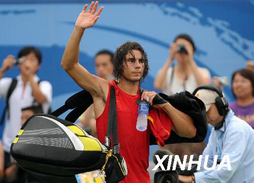 8月13日,納達爾在比賽結(jié)束后向觀眾招手致意。當(dāng)日,在北京奧運會網(wǎng)球男單第三輪比賽中,西班牙選手納達爾以2比0戰(zhàn)勝俄羅斯選手安德烈耶夫。新華社記者 鄒崢