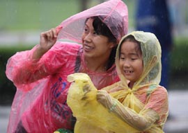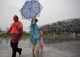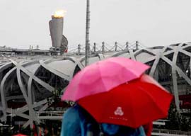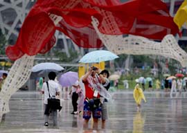 8月14日,北京下起大雨,雨中的奧林匹克公園別有一番情趣。