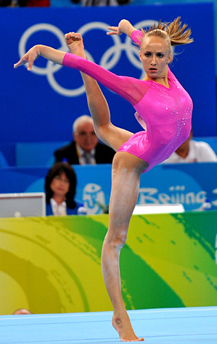美國隊員柳金將她身材高挑、線條舒展、動作穩(wěn)定的特點(diǎn)充分展現(xiàn)了出來,以總分63.325的成績獲得北京奧運(yùn)會體操女子個人全能金牌,這也是美國隊在北京奧運(yùn)會上獲得的首枚體操金牌。中國選手楊伊琳獲得銅牌。 柳金的隊友、2007年世錦賽個人全能冠軍肖恩·約翰遜最后時刻在自由體操中超越楊伊琳,獲得亞軍,成績?yōu)?2.725分。楊伊琳的總分為62.650分。 這也是18歲的柳金第一次獲得奧運(yùn)會冠軍,她幫助美國在奧運(yùn)會上蟬聯(lián)了這個項目的金牌。 經(jīng)過混合區(qū)時,柳金說,到現(xiàn)在她還都沒想到已經(jīng)拿到金牌!案兄x我的父母,父親一直教導(dǎo)我,而母親則陪我度過最艱苦的時光”。 2007年世錦賽團(tuán)體和平衡木冠軍柳金是一名移民美國的俄羅斯裔運(yùn)動員,她的教練就是她的父親。 今天的比賽在最后一刻才見分曉。最后一項比賽自由體操開始前,暫列第一的柳金僅領(lǐng)先第二名楊伊琳0.15分,領(lǐng)先第三名約翰遜0.6分。倒數(shù)第二個出場的柳金自由體操得到了15.525分,超過了楊伊琳15.000的得分,也讓落后的約翰遜難以追趕。 柳金今天的特點(diǎn)是穩(wěn)定性高,在順利完成她的弱項跳馬后,其他三個長項中她都拿到了高分,包括資格賽中曾出現(xiàn)重大失誤的高低杠。 第一次參加奧運(yùn)會的楊伊琳今天的表現(xiàn)非常不錯,她在高低杠中完成了與柳金一樣難度分同為7.7分的動作,得分16.725分,超過了柳金。她自己并不擅長的平衡木和自由體操動作也都高質(zhì)量完成,贏得教練與全場觀眾的稱贊。完成比賽后,楊伊琳向四個方向看臺的觀眾深深鞠了四個躬,表示感謝。 楊伊琳賽后對自己的表現(xiàn)表示滿意。教練劉群琳對她的評價則是“不畏強(qiáng)手,奮力拼搏,我非常滿意”! 不同于男子全能要進(jìn)行6個項目的較量,女子全能比賽項目只有4個。一個項目上出現(xiàn)失誤,靠其他項目追回來的可能性非常小。 中國另一個進(jìn)入決賽的選手江鈺源第一項跳馬出現(xiàn)失誤,落后不穩(wěn)坐到了墊子上,最后成績?yōu)?0.900分,名列第六。 銀牌得主約翰遜說:“我非常高興能拿到獎牌,能參加奧運(yùn)會已經(jīng)很開心。今天沒有奪得金牌,我一點(diǎn)也不失望。我很為柳金驕傲,她非常努力,應(yīng)該拿到金牌。” 2000年悉尼奧運(yùn)會和2004年雅典奧運(yùn)會上,劉璇和張楠曾分別奪得全能的銅牌。 目前,中國體操隊在北京奧運(yùn)會上已奪得三枚金牌和一枚銅牌,位居各隊之首。