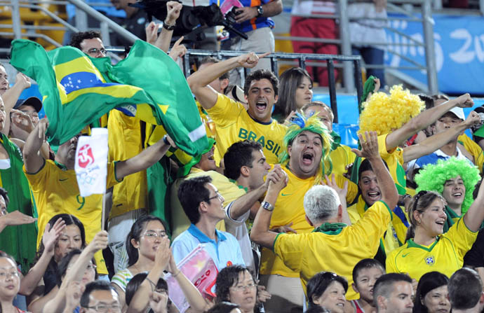 8月16日,巴西球迷來到朝陽公園沙灘排球場觀看比賽。當天,這里舉行了男女16強復賽。